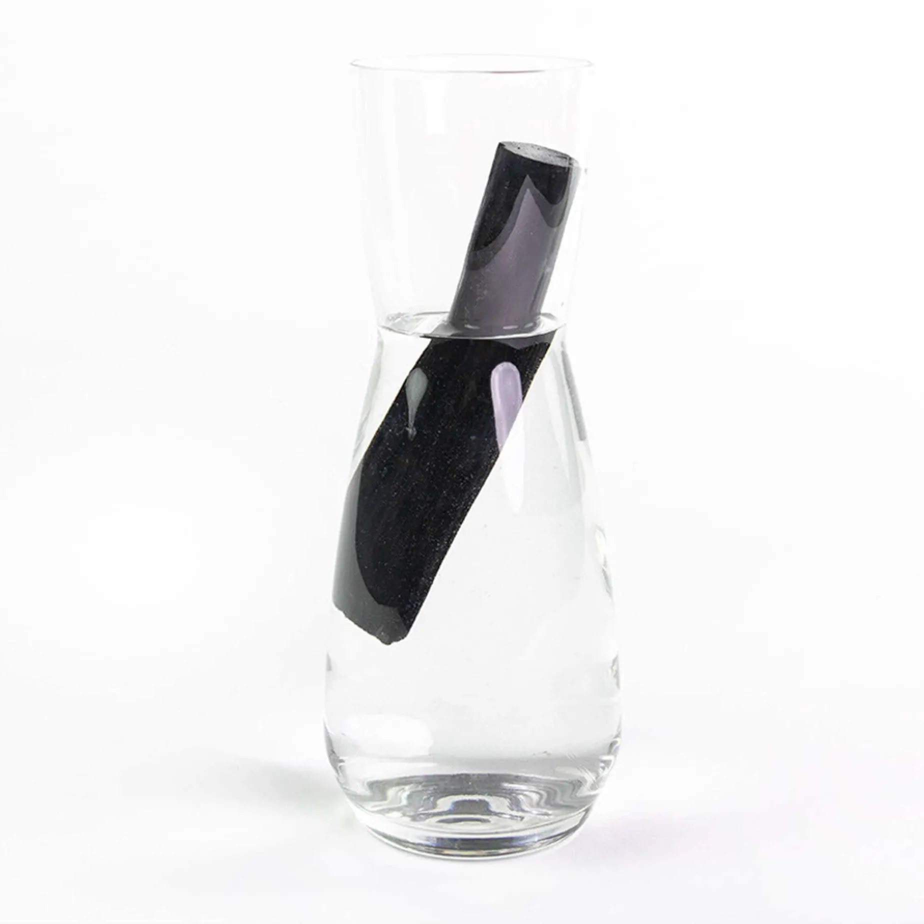 First, boil the charcoal in water for 10 minutes and let it cool before use. Fill a bottle or carafe with tap water and leave to sit while the charcoal filters impurities from the water. You can taste the difference after just one hour but for best results, leave it overnight. You can reboil the charcoal to use again but it will begin to lose its effectiveness after six months.
